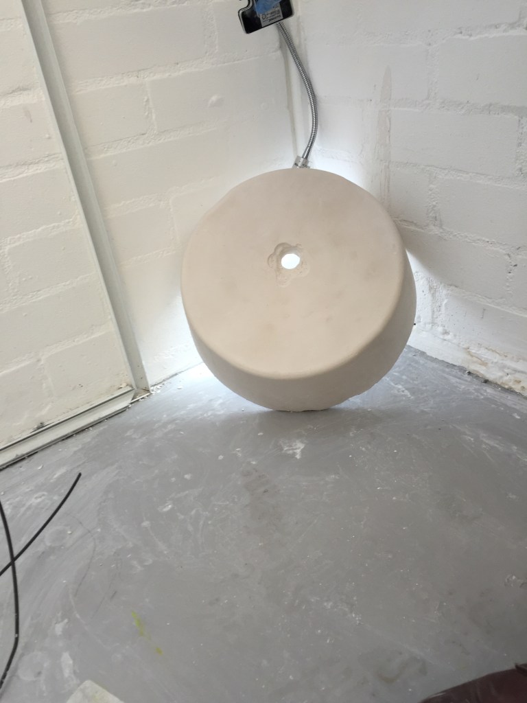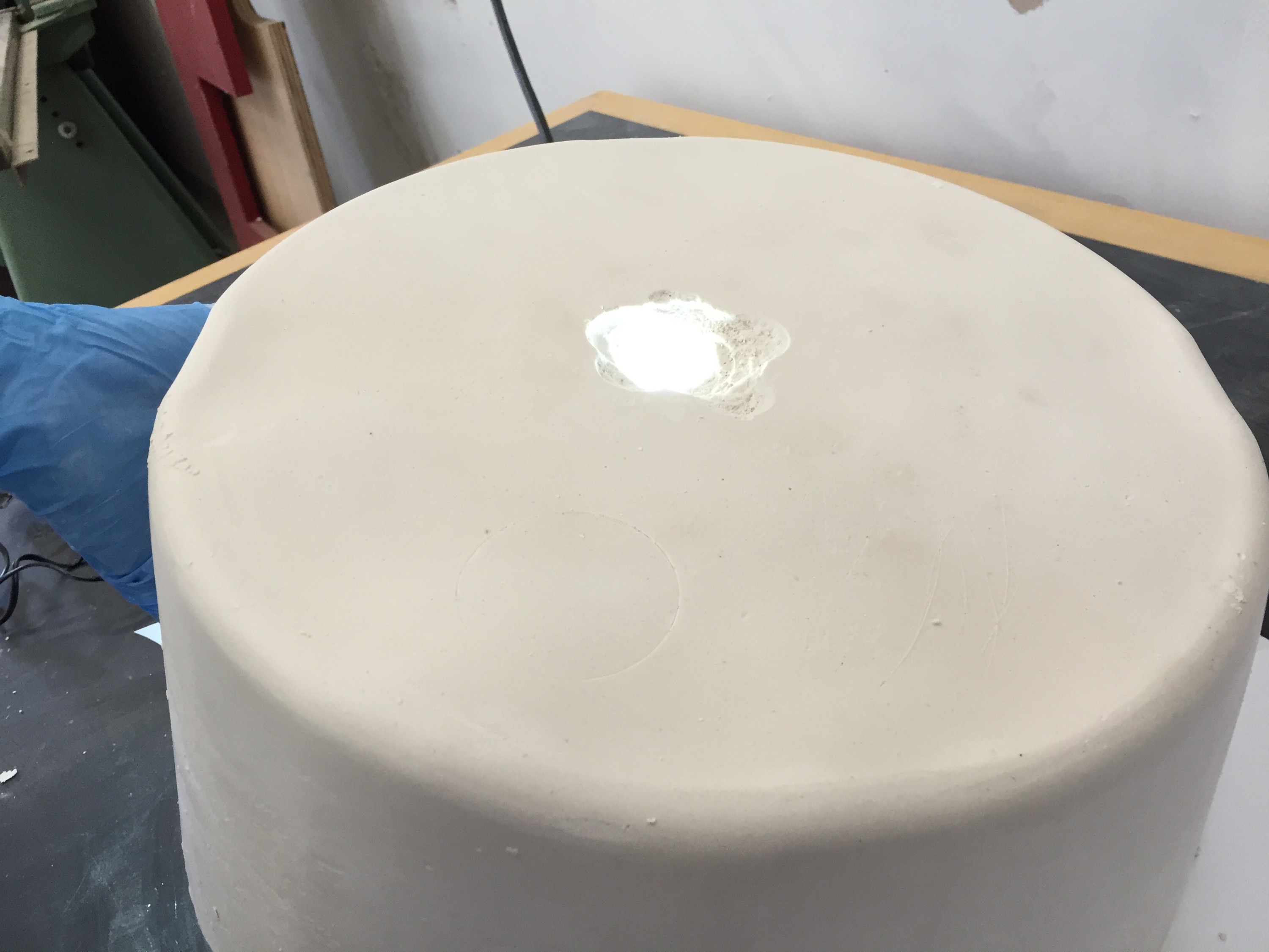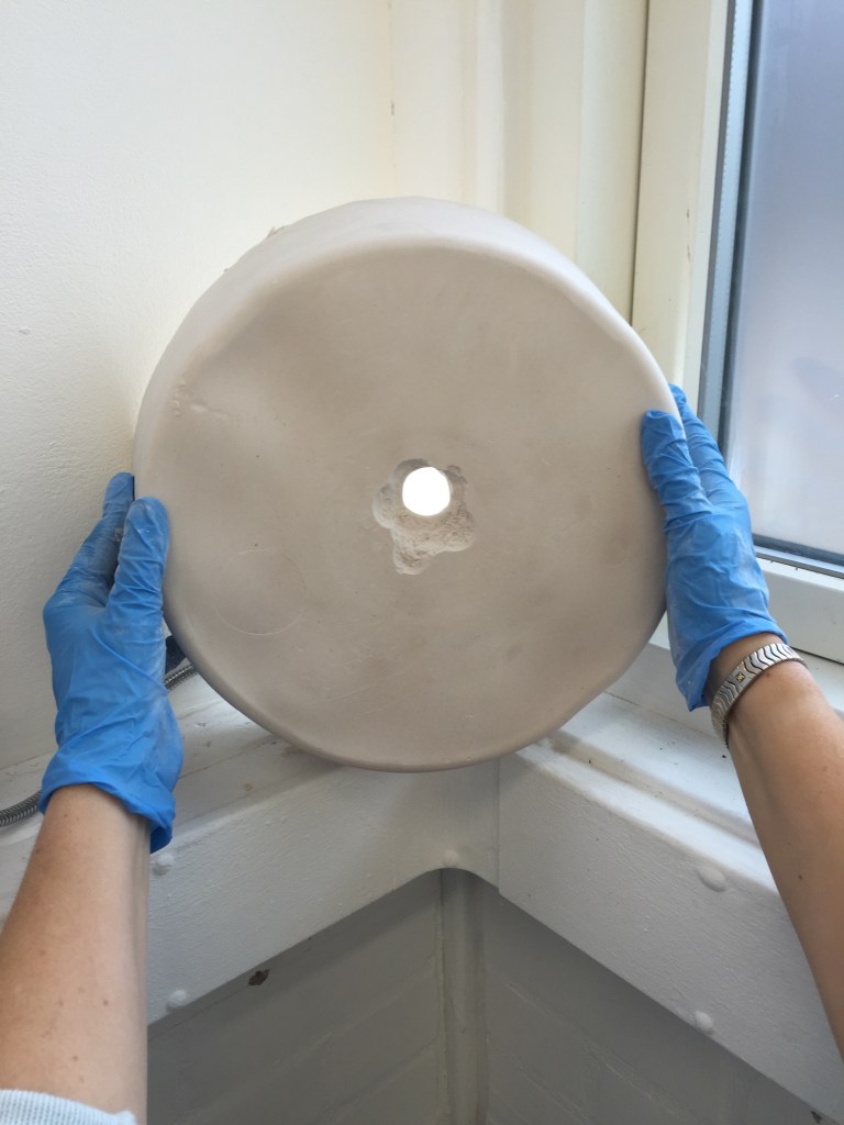 As my previous experiment with the plaster blocks were a success I decided to develop my ideas by creating a new block which was hollowed inside by casting the block around a balloon. A peephole was then created on the front by hammering the front in the corner till a small round hole appeared in the center.