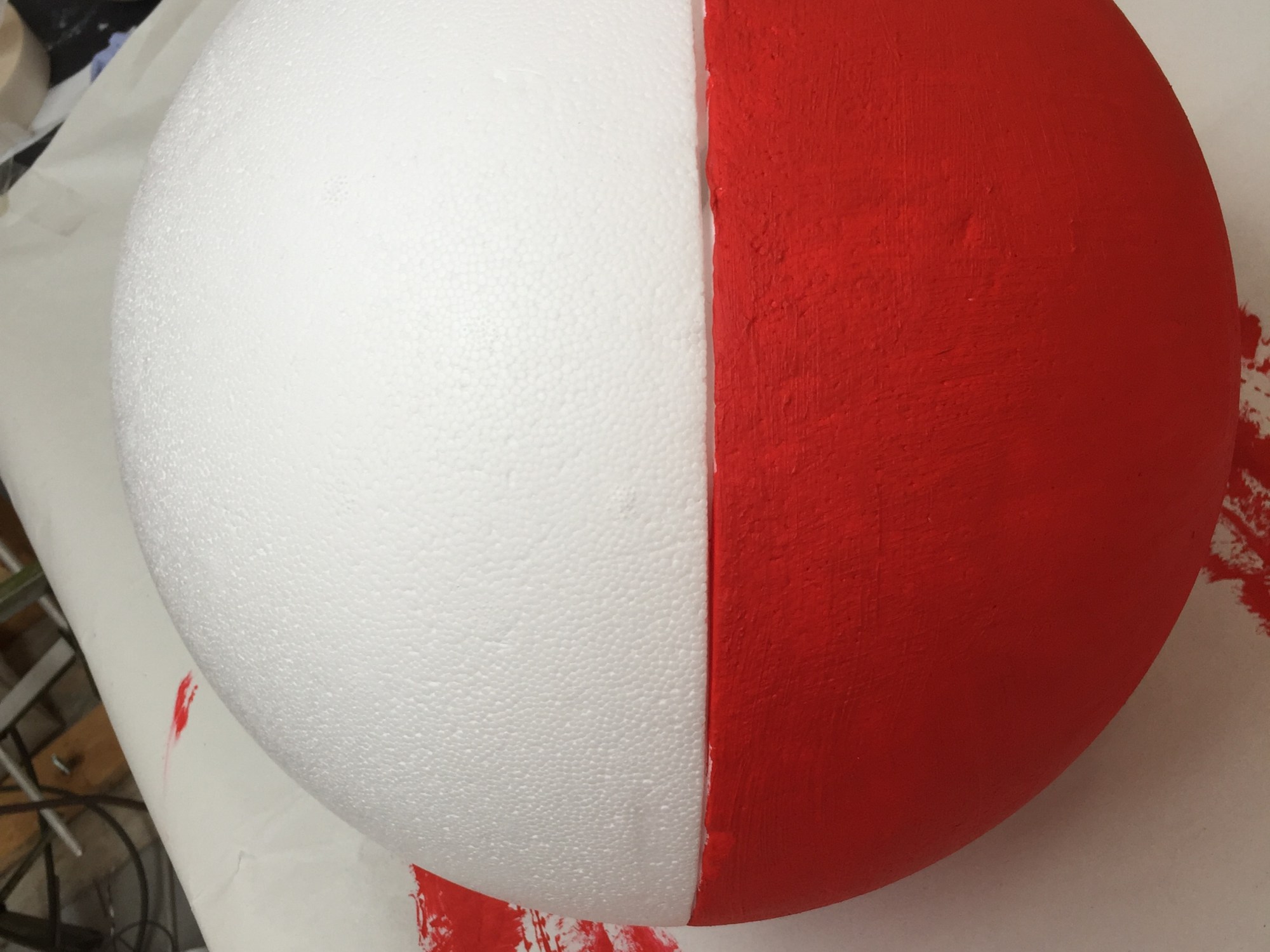 Continued with my Tate project I decide to pain half of a giant polystyrene ball red and hung it on my red wall space experimenting on where best to hang it