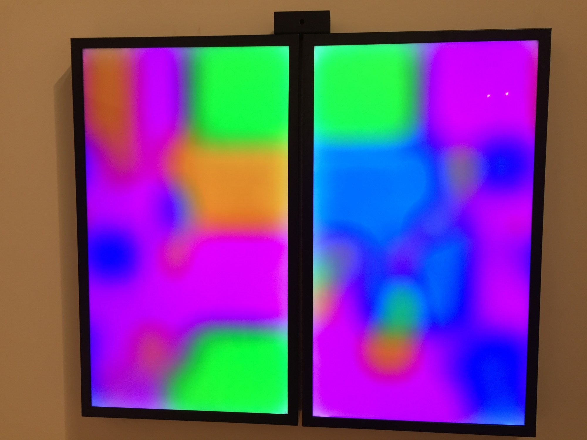 Jonas Lund’s VIP (Viewer Improved Painting) consists of two screens and gaze tracker camera reading where the viewer is looking at, changing the image depending on where they are looking, creating their own postmodern composition.