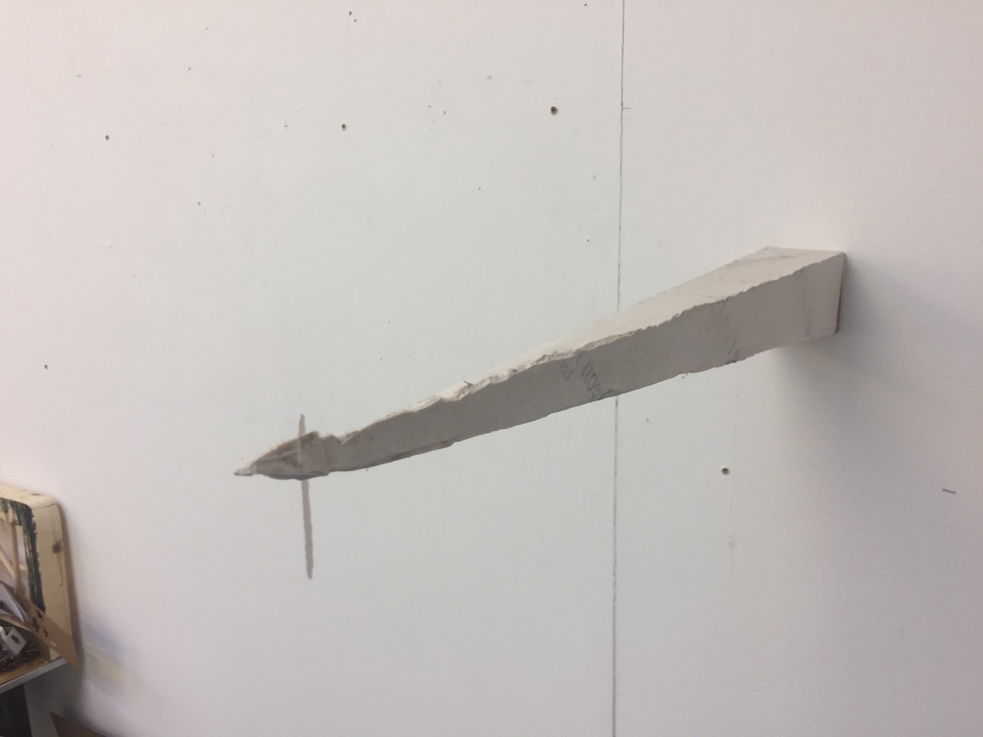 i looked at work by Daniel Premec’s where spikes are bursting through a space. my work however my spike is part of the wall, which has emerged from the flat surface to protrude and challenge.
