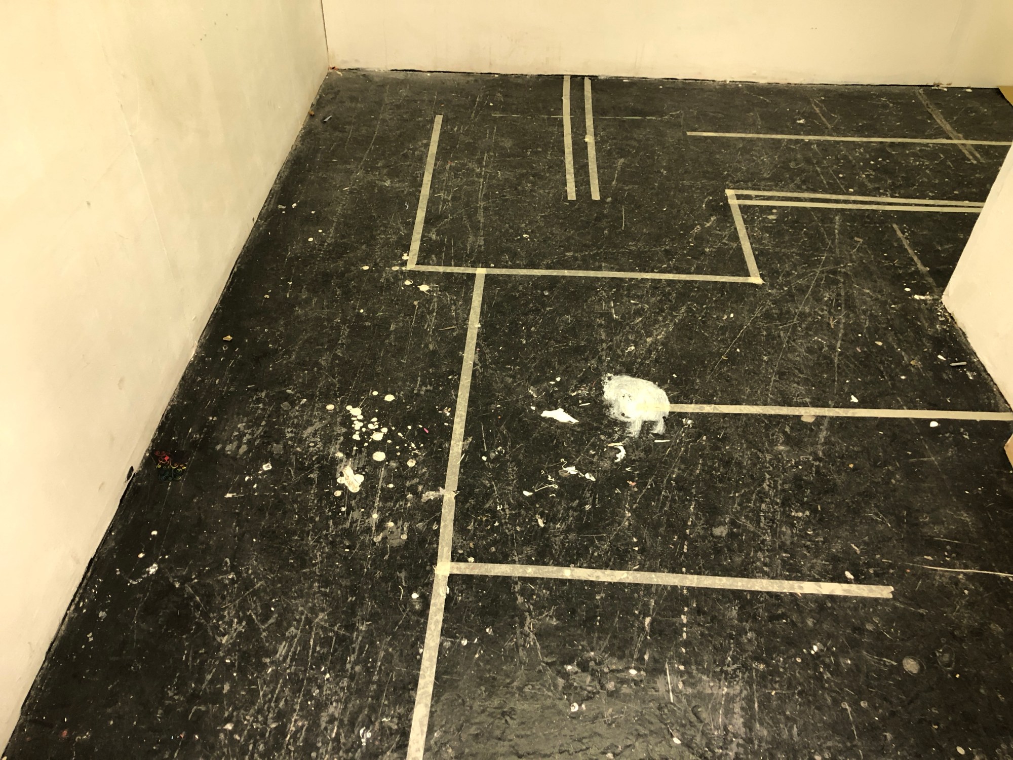 happy with my current plans for the degree show, it was recommended that I get some tape and mark where each wall would have to be placed, placing the tape the full length of where each wall would be.